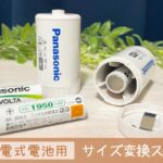 パナソニックのサイズ変換スペーサーは、エネループなどの単3形充電式電池を『単1形・単2形』サイズとして使えるようにするアダプターのこと。