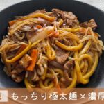 麺と具をラードで炒め、こってりとした濃厚ソースで仕上げています。